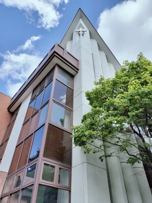 1979年、現在の北1条西13丁目に新会堂を建築・移転し、再び田上義也によって会堂の設計がなされました。